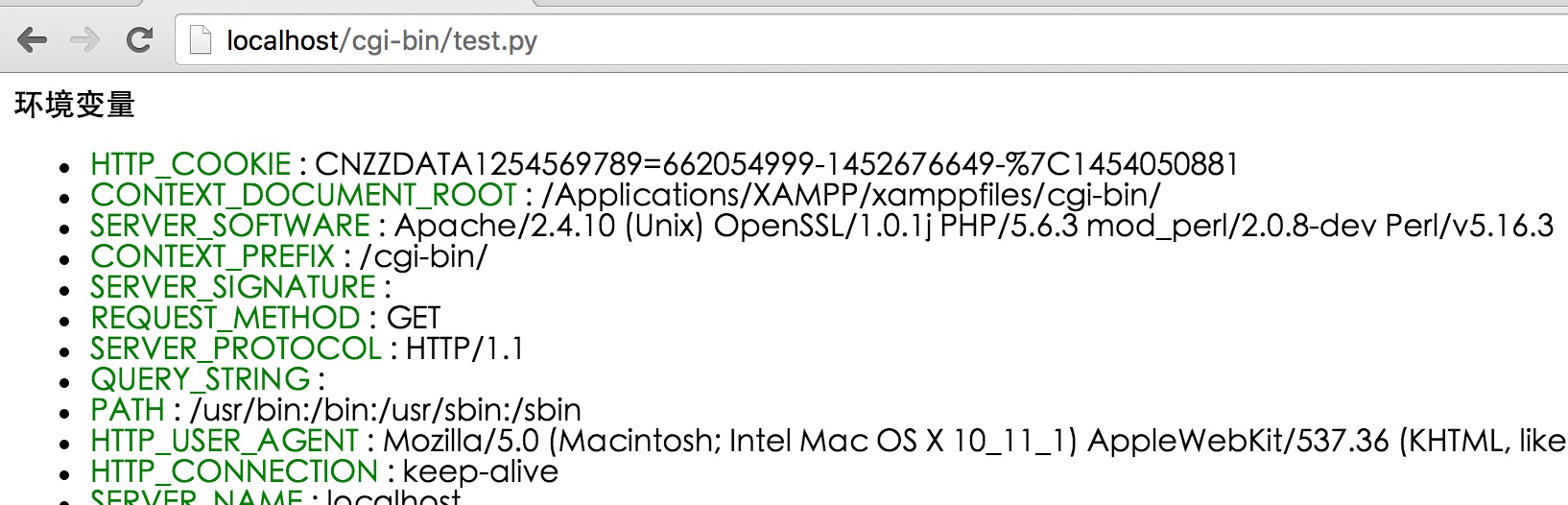 以下是一个简单的CGI脚本输出CGI的环境变量: