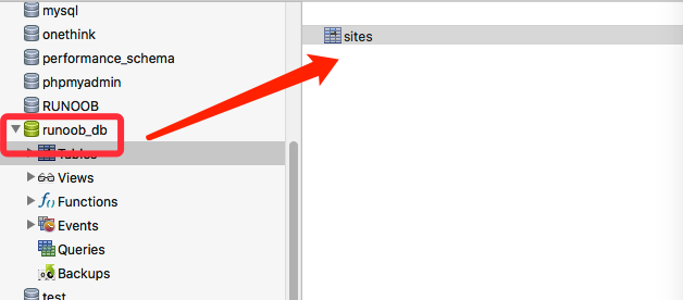 执行成功后,我们可以看到数据库创建的数据表 sites,字段为 name 和 url。