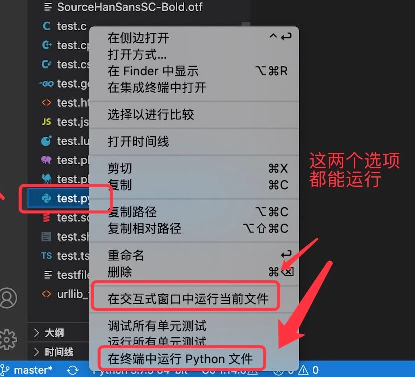 可以右击文件,选择"在终端中运行 Python 文件":