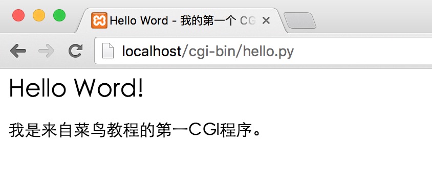 print ('<h2>Hello Word! 我是来自菜鸟教程的第一CGI程序</h2>')