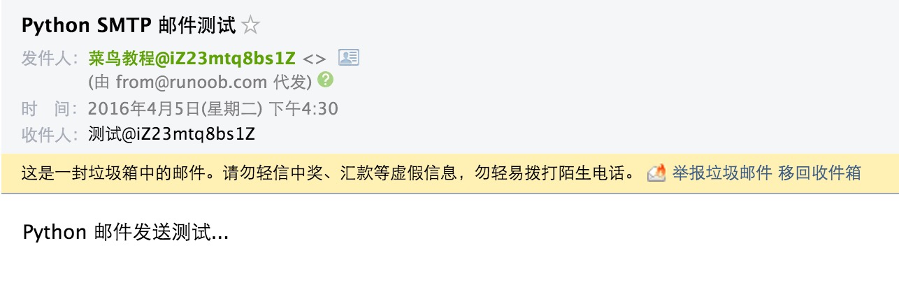 msg['Subject']="菜鸟教程发送邮件测试"